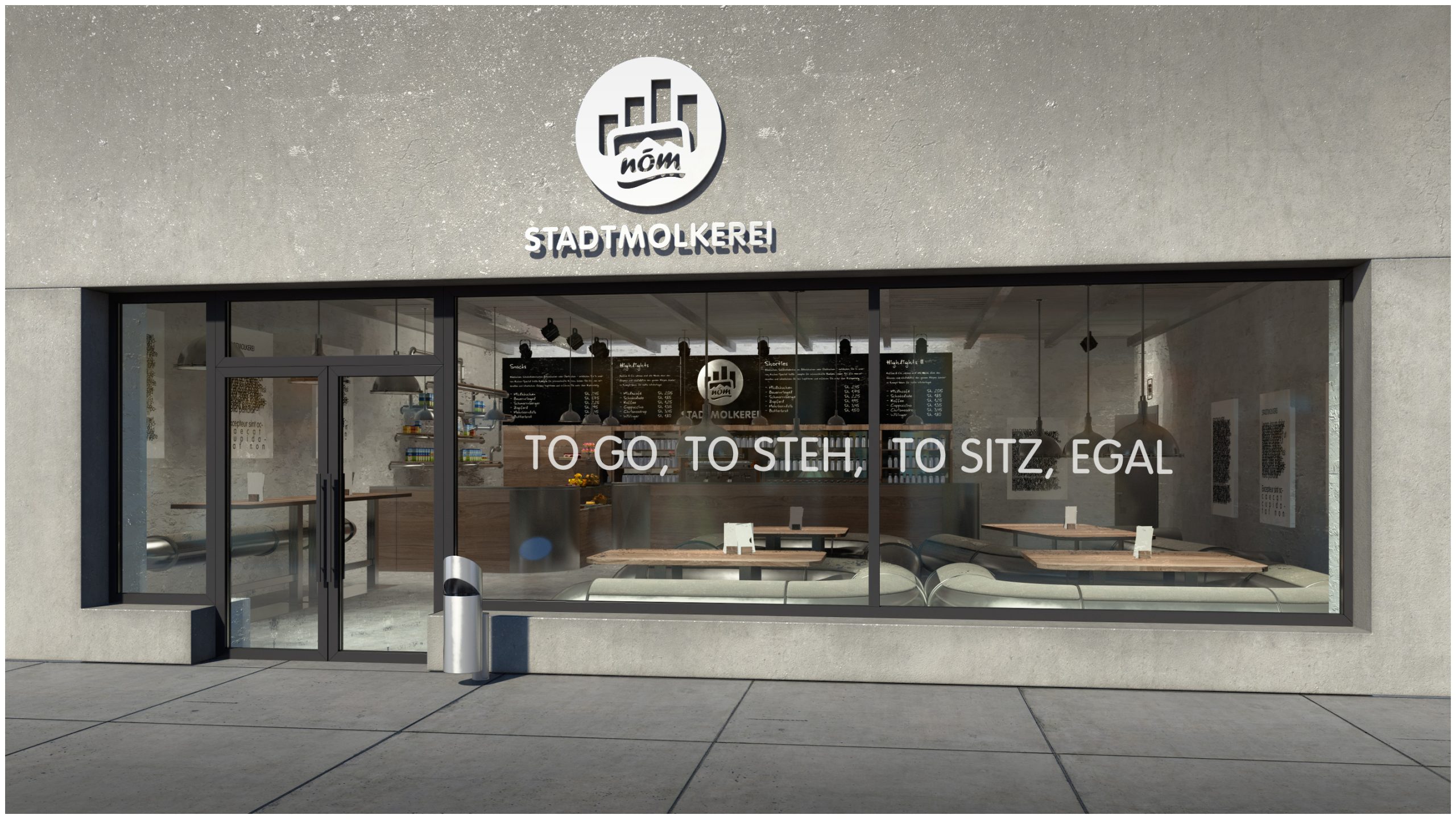 Die niederösterreichische Molkerei NÖM AG in Baden bei Wien geht gerne unkonventionelle Wege. Wie hätten sie da unser lautes Muhhh auf der Wiede überhören können. Es ging um ein PopUp Store inmitten Wiens und einer Darstellung mit der DNA, doch nicht dem Look einer Milchbar. Konzeptuell folgten wir dem Weg der Milch und entwarfen überdimensionale Milchrohre als Sitzgelegenheiten und Regale. Geplant ist außerdem eine lange Bar, an der Besucher ihre eigenen individuellen Kreationen zusammenstellen können, sowie ein intelligentes Bestellsystem über in die Tische integrierte Tablets. Neben der Integration von Social Media gehören auch Outfit- und Logodesign zum Konzept. Umsetzung folgt und bei uns schießt die Milch ein.