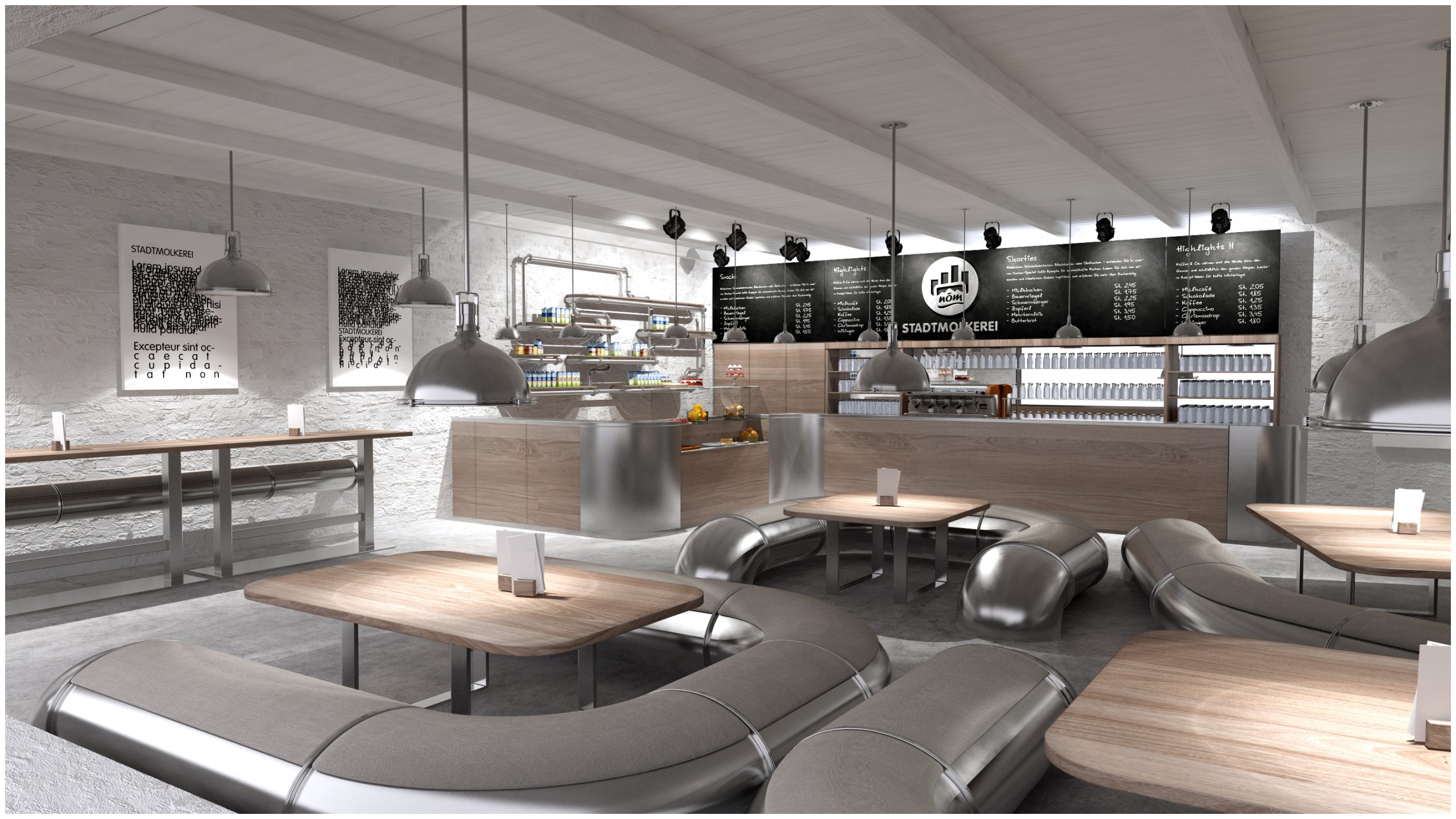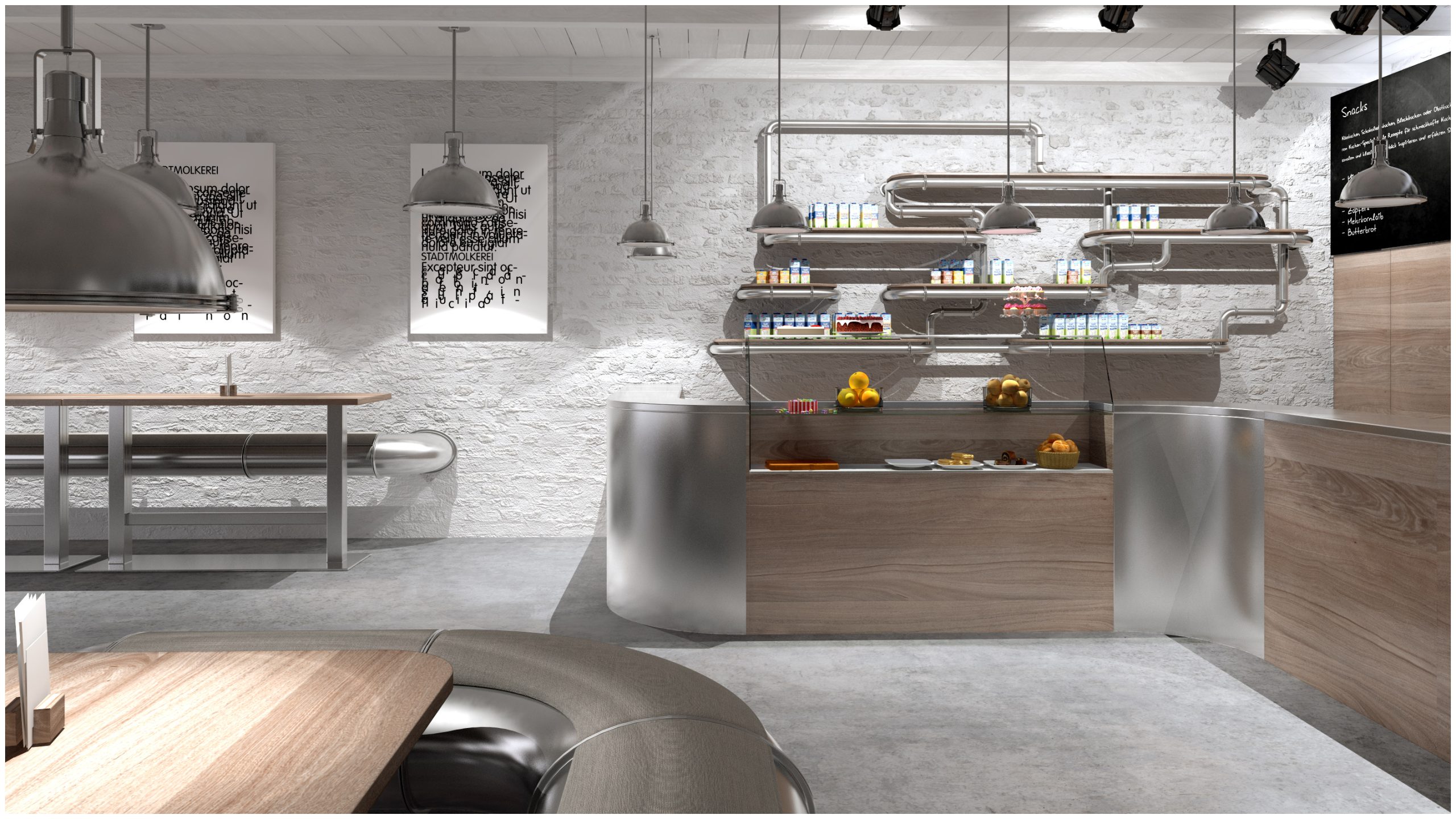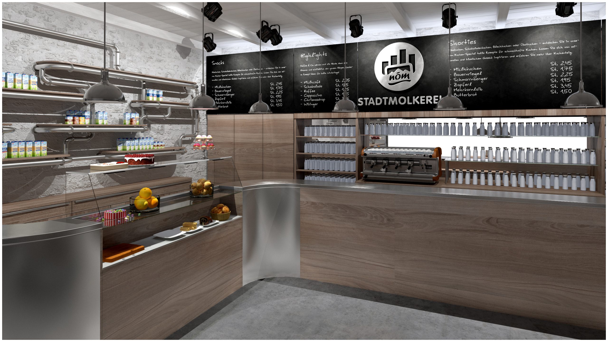 Die niederösterreichische Molkerei NÖM AG in Baden bei Wien geht gerne unkonventionelle Wege. Wie hätten sie da unser lautes Muhhh auf der Wiede überhören können. Es ging um ein PopUp Store inmitten Wiens und einer Darstellung mit der DNA, doch nicht dem Look einer Milchbar. Konzeptuell folgten wir dem Weg der Milch und entwarfen überdimensionale Milchrohre als Sitzgelegenheiten und Regale. Geplant ist außerdem eine lange Bar, an der Besucher ihre eigenen individuellen Kreationen zusammenstellen können, sowie ein intelligentes Bestellsystem über in die Tische integrierte Tablets. Neben der Integration von Social Media gehören auch Outfit- und Logodesign zum Konzept. Umsetzung folgt und bei uns schießt die Milch ein.