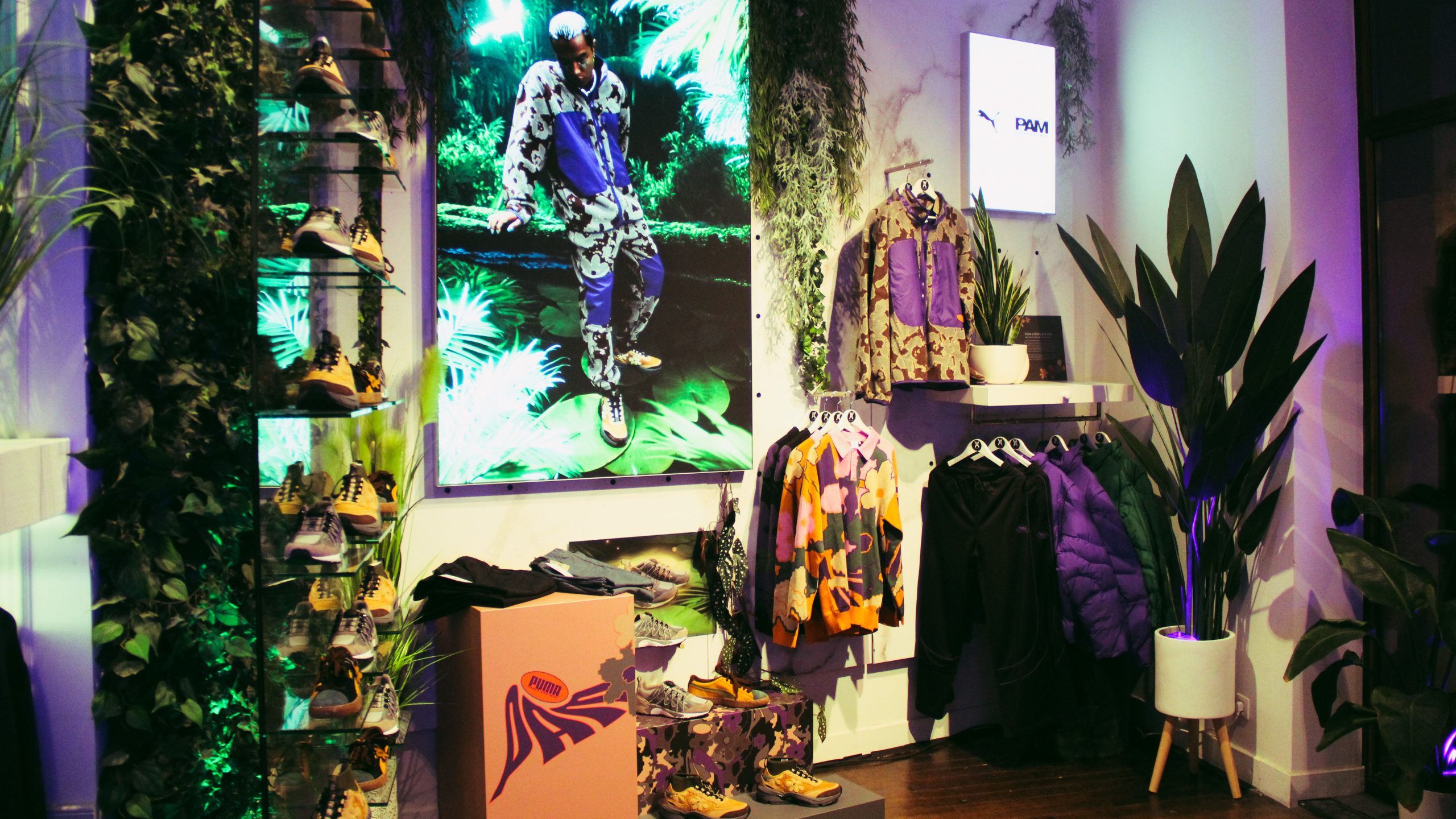 In Antwerpen durften wir für PUMA den Regenwald in den LOCKWOOD AVENUE Store bringen, so dass die Amseln vom Dach fielen. PUMA X PAM heißt die Kollektion, die mit den Farben der Erde, vor allem mit dem Grün des Waldes spielt. Für uns hieß das mehr als nur ein paar Pflanzen hinstellen. Wir wollten den Store in genau das verwandeln, was Kreative immer denken, aber sich nie zu sagen trauen. Wir wollten echtes Rainforest-Feeling und, na klar…Authentizität. So sehr dass uns aus lauter Verbissenheit das Schicksal einen Wasserrohrbruch im Stockwerk über dem Store bescherte und die künstlichen Regentropfen ihren Weg durch die Decke auf unsere Pflanzenwände fanden. Für den Store nicht ganz so cool, aber Ihr hättet mal die Atmo fühlen sollen.