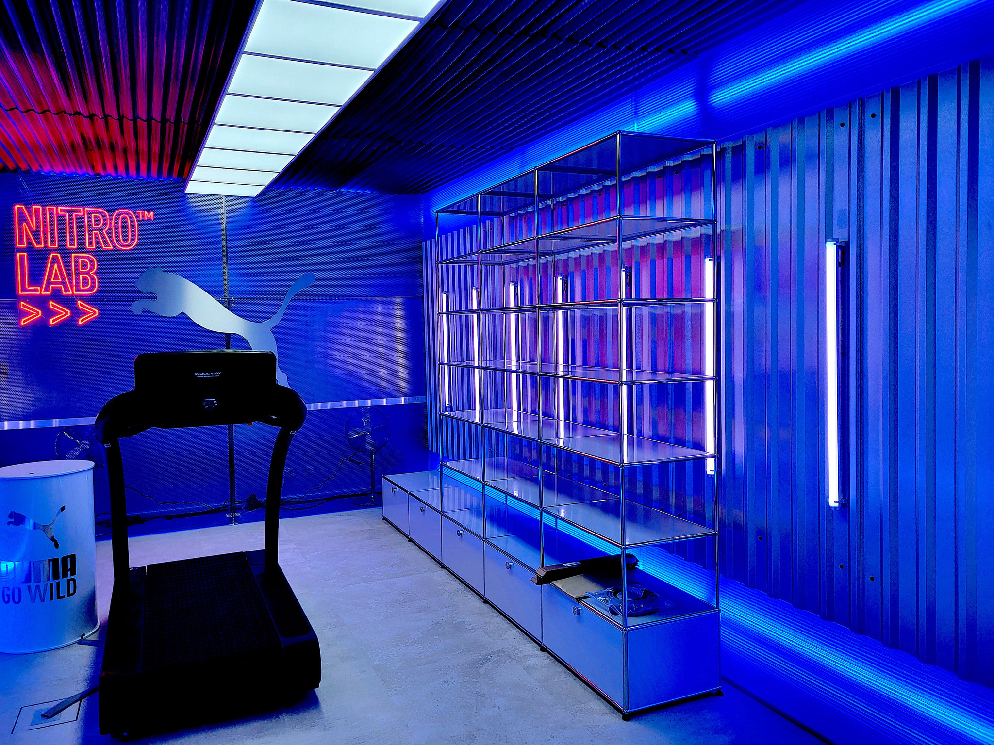 Mit dem PopUp Lab fueled by NITRO in Form eines Raum in Raum Konzepts, durften wir im PUMA Headquarter den Rahmen eines Testlabors für international aktive Runner kreieren und umsetzen.